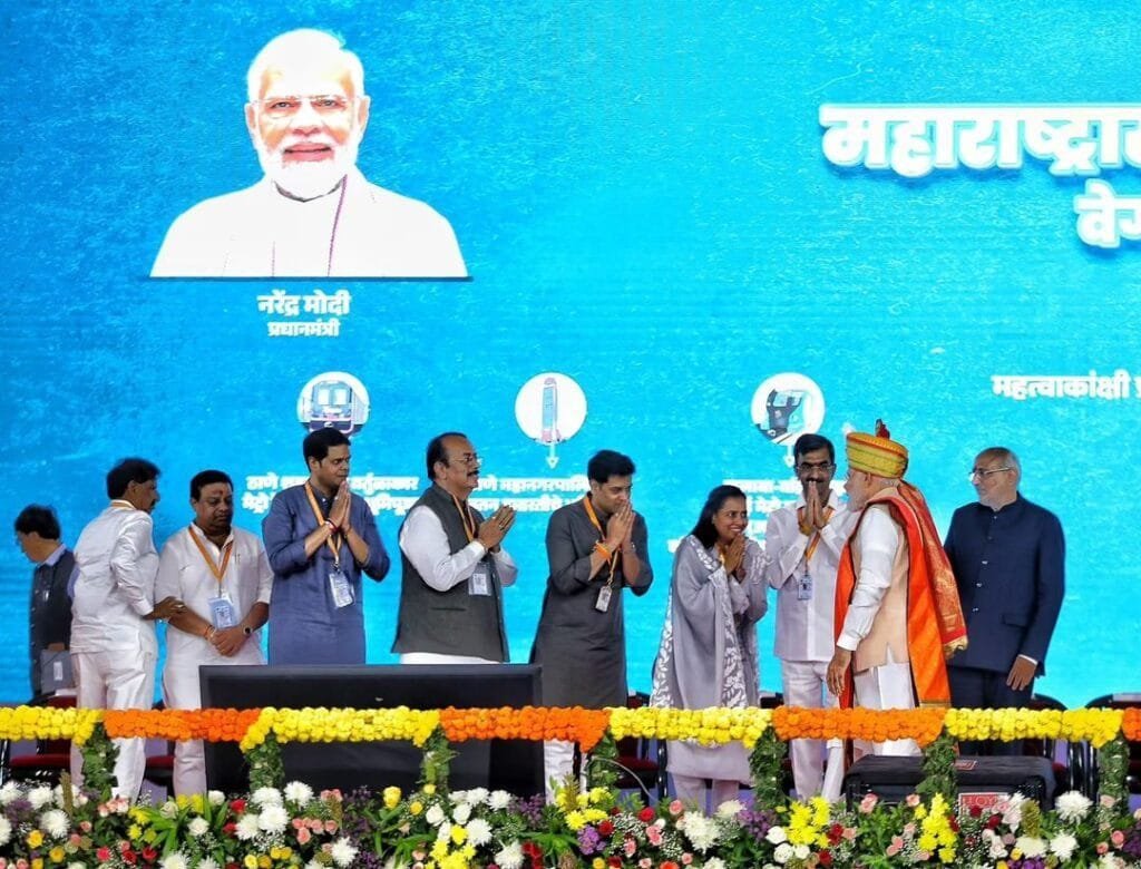 ठाणे येथे देशाचे पंतप्रधान मा. श्री. नरेंद्रजी मोदी यांच्या हस्ते ३३ हजार कोटींच्या निधीतून विविध विकासकामांचे भूमिपूजन आणि शुभारंभ सोहळा भव्य स्वरूपात पार पडला. या ऐतिहासिक सोहळ्याला राज्यपाल मा. सी.पी. राधाकृष्ण, मुख्यमंत्री एकनाथ शिंदे, उपमुख्यमंत्री देवेंद्र फडणवीस आणि अजितदादा पवार यांसह अनेक प्रमुख नेते उपस्थित होते, ज्यामुळे हा कार्यक्रम विशेषत्वाने प्रकाशझोतात आला.