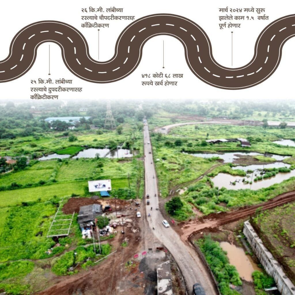 मार्च २०२४ मध्ये सुरू झालेले हे काम दीड वर्षात पूर्ण करण्याची मुदत आहे. त्यामुळे पुढील वर्षी दिवाळीपर्यंत हे काम पूर्ण होईल, असा अंदाज आहे. या कामासाठी ४१८ कोटी ६८ लाख रूपये खर्च होणार आहेत. . या महामार्गावर पाचवा मैल ते मुरबाड या २६ किलोमिटर लांबीच्या रस्त्याचे चौपदरीकरणासह काँक्रिटीकरण होईल. तसेच कदमपाडा ते सावर्णेदरम्यानच्या २५ किलोमिटर लांबीच्या रस्त्याचे दुपदरीकरणासह काँक्रिटीकरण होईल. या कामामुळे मुरबाडच्या दळणवळणात मोलाची भर पडणार आहे.